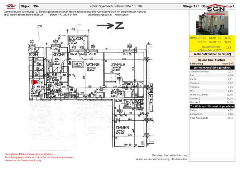 | Heizwärmebedarf: | 90,90 kWh/m²a |
