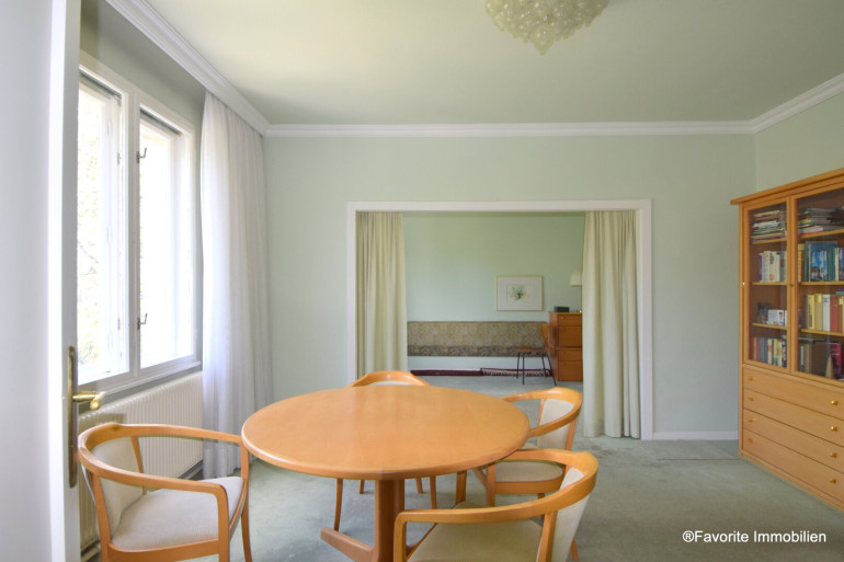Allein das großflächige Wohnzimmer umfasst eine Fläche von 28 m². Dieses ließe sich aber ganz einfach trennen und man gewinnt dadurch ein weiteres Schlaf-, Kinder-, oder Arbeitszimmer.