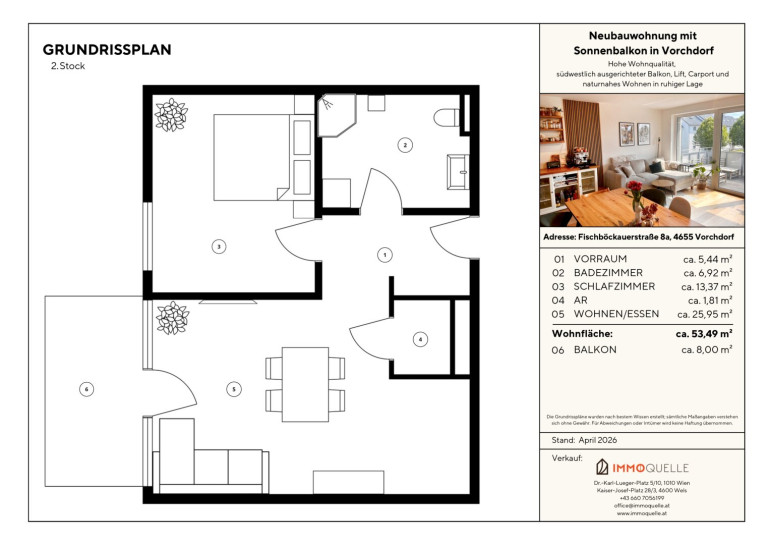 Willkommen in einer Wohnung, die den Alltag angenehm leicht macht. In der Fischböckauerstraße 8a/10 in 4655 Vorchdorf wartet diese hochwertige Neubauwohnung auf neue Mieter - ruhig gelegen, klar gegliedert und mit genau jener Wohnatmosphäre, die man sich nach einem langen Tag wünscht. Der südwestlich ausgerichtete Balkon, die helle Raumwirkung und die praktische Aufteilung schaffen ein Zuhause, das Geborgenheit und Komfort auf schöne Weise verbindet.