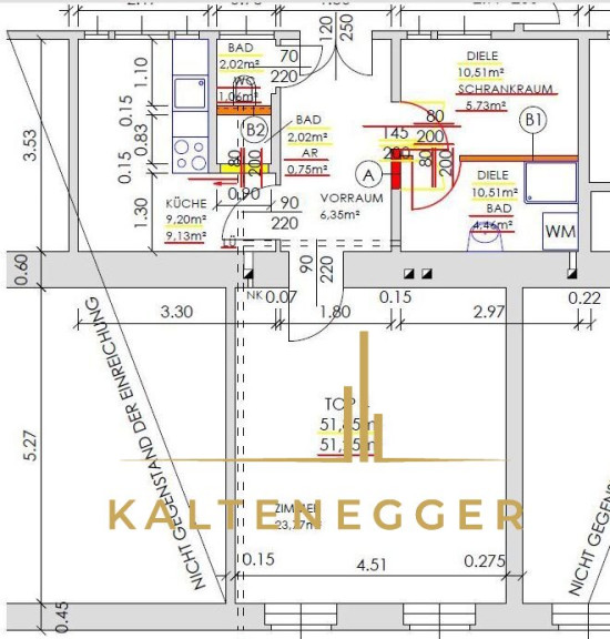Die Wohnung erstreckt sich über rund 51,25 m², liegt im 1. Liftstock und ist wie folgt aufgeteilt: