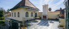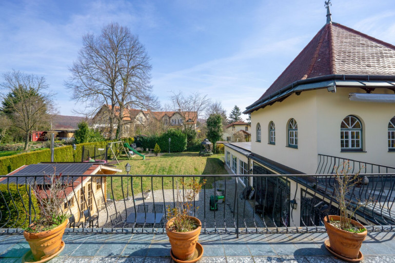 Das Anwesen besticht durch seine repräsentative Erscheinung mit kaisergelber Fassade, Rundbogenfenstern, Stuckverzierungen, Walmdach und liebevoll erhaltenen Details. Ein großzügiger Innenhof sowie der parkähnliche Garten schaffen ideale Voraussetzungen für stilvolle Empfänge und private Rückzugsorte.