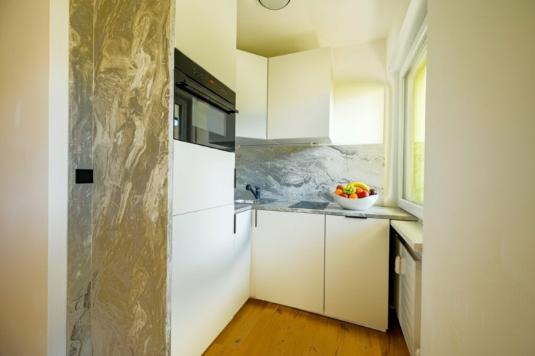 Diese Garconniere befindet sich im 4. Obergeschoss und überzeugt durch ihre helle, freundliche Atmosphäre sowie eine besonders lange Sonneneinstrahlung und tollen Ausblick. Ein absolutes Highlight ist der unverbaubare Ausblick auf die südliche Bergwelt.