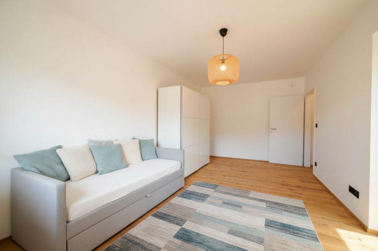 - Böden: hochwertiger Echtholzparkett (Eiche) sowie Fliesen im Badezimmer