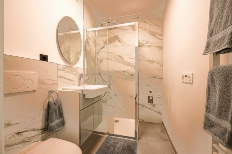 - Sanitär: komplett neue Wasser- und Abwasserleitungen bis zur Hauptleitung; modernes Badezimmer mit WC, Dusche, Waschtisch, Badezimmerradio, Waschmaschinenanschluss, Handtuchheizkörper und beleuchtetem Spiegel