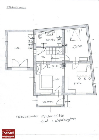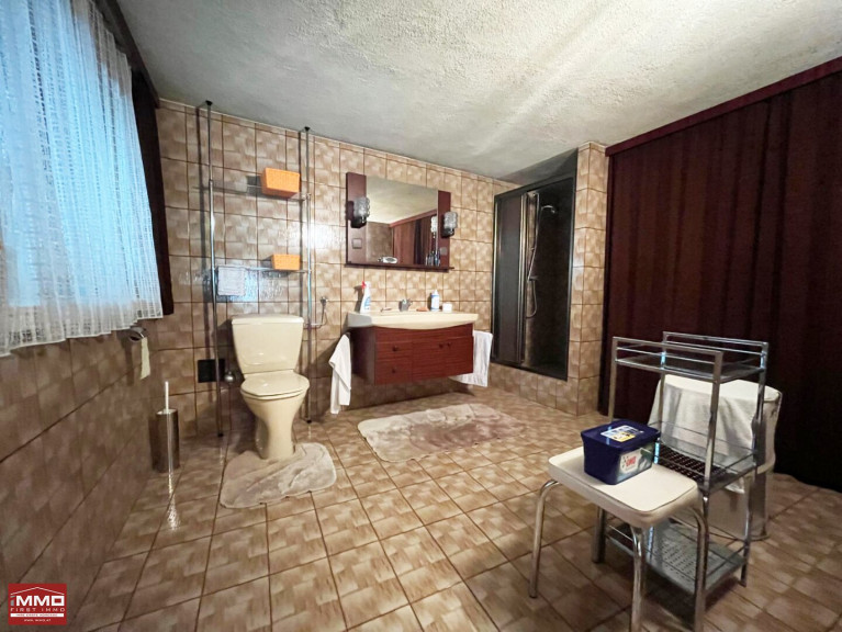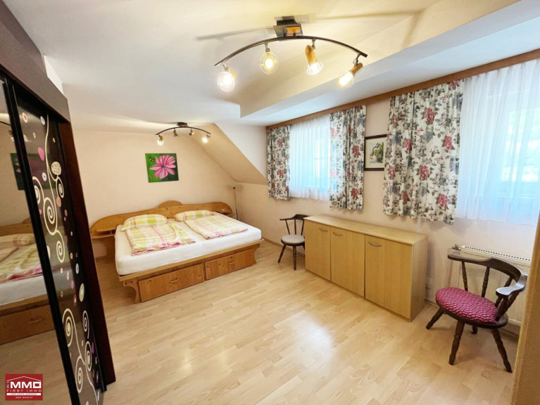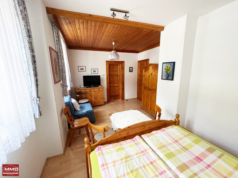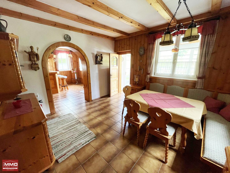 EG: Schlafzimmer (Gästezimmer), Badezimmer samt WC und WM-Anschluss, große wunderschöne Bauernstube mit Tischlermöbel samt Veranda, Vorraum und ein Abstellraum