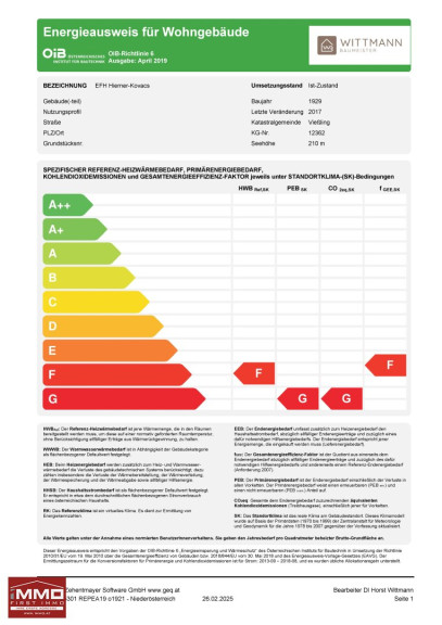 | Heizwärmebedarf: | F 196,80 kWh/m²a |
