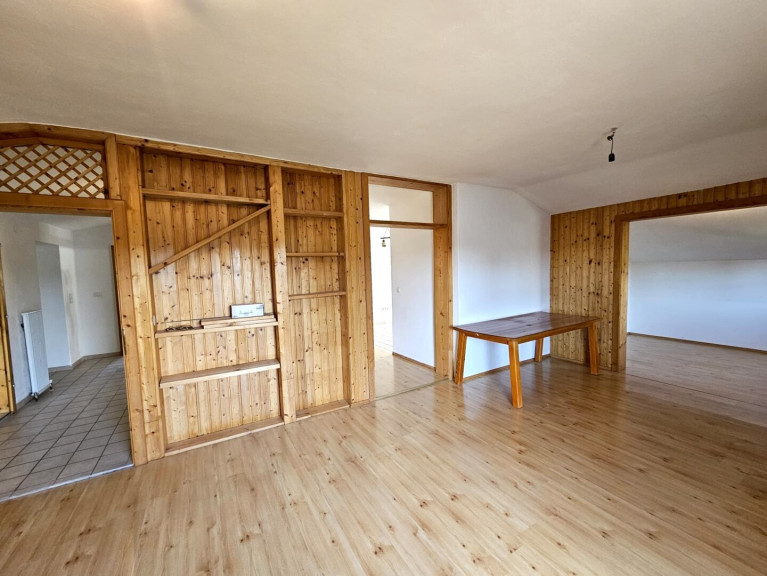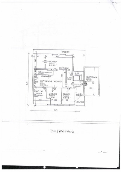 - OG-Mansarde: ca. 101 m², Wohnküche, 3 Zimmer, Bad mit Dusche u. WC, 2 Balkone, Technikraum;