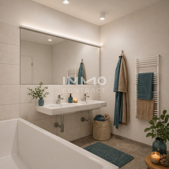 - Moderne Fliesen (30 × 60 cm) in den Bädern