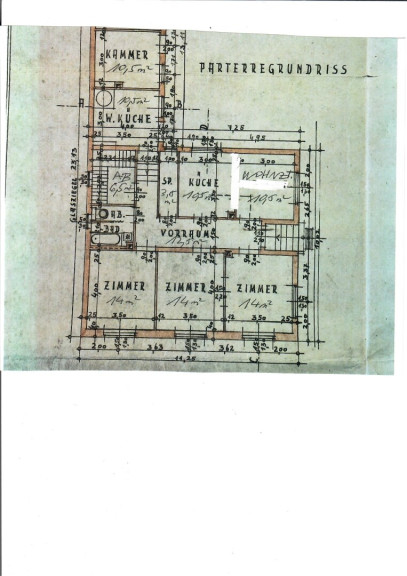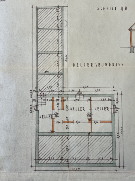 Alle Zimmer befinden sich auf einer Ebene (Hauseingang mit wenigen Stufen) - ein Keller sowie div. Schuppen (ehem Stall) und eine Scheune hinter dem Haus sind vorhanden.