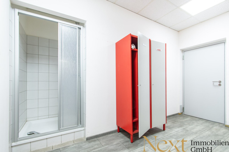 Ergänzend stehen Büroflächen zur Verfügung, die über das Stiegenhaus erreichbar sind (kein Lift vorhanden). Sanitäreinrichtungen inklusive Duschen sind vorhanden und bieten zusätzlichen Komfort für Mitarbeiter.