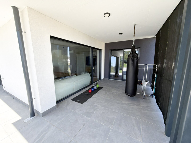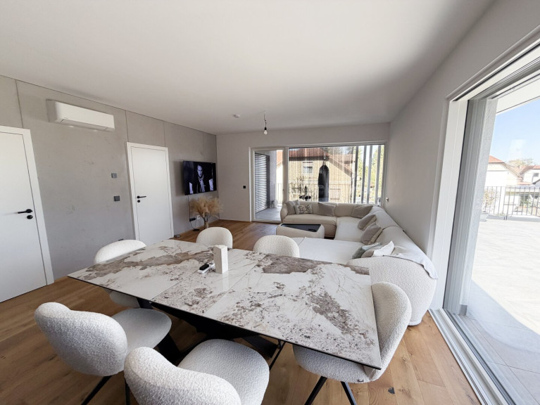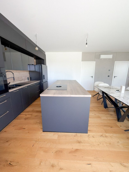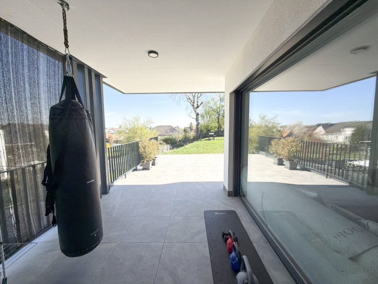 Die Wohnung ist mit einer Klimaanlage sowie weiteren Annehmlichkeiten modernen Wohnens ausgestattet, wozu selbstverständlich auch eine hochwertige und stilvolle Einbauküche zählt. Ein besonderer Vorzug dieser Immobilie ist die großzügige, teilweise überdachte Terrasse in Kombination mit dem Garten, die ideale Voraussetzungen für entspannte Stunden und erholsame Freizeit im Freien bietet.