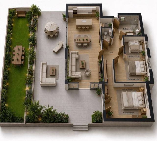 Exklusive 3-Zimmer-Gartenwohnung mit großzügiger Terrasse und modernem Wohnkomfort