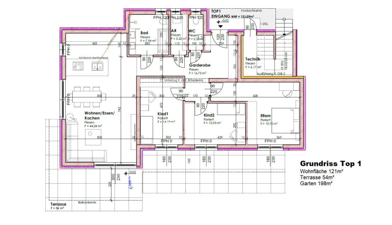 Auf über 44m² erstreckt sich der helle Wohn-Essbereich, der nahtlos an die 54m² große Terrasse und den 198m² großen Garten anschließt. Eine harmonische Verbindung die durch teils bodentiefe Fensterelemente entsteht und den Innen- und Außenbereich verbindet. Drei geräumige Schlafzimmer, ein Badezimmer mit Go-in-Dusche und Badewanne, eine separate Toilette und ein praktischer Abstellraum runden das Raumangebot ab.