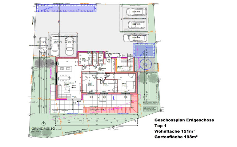 Zusätzlich erwerbbar ist das Doppelcarport und eine weitere Parkfläche im Freien, wo bei Bedarf selbstverständlich auch E-Ladestationen errichtet werden können.