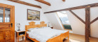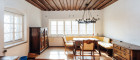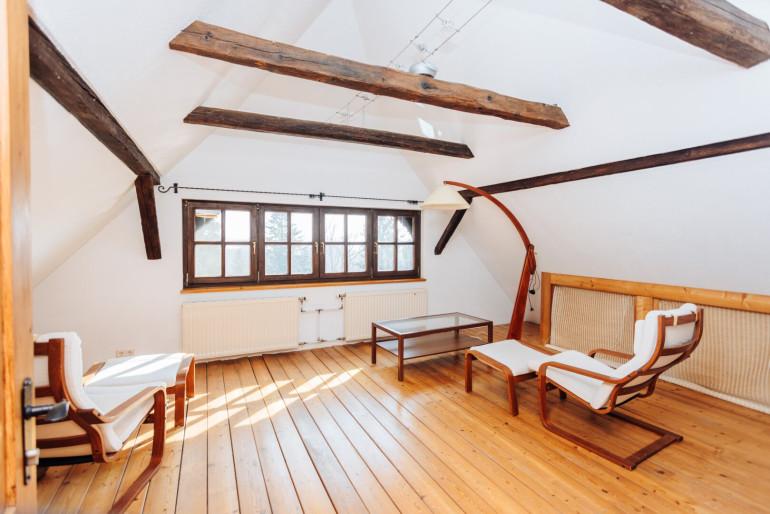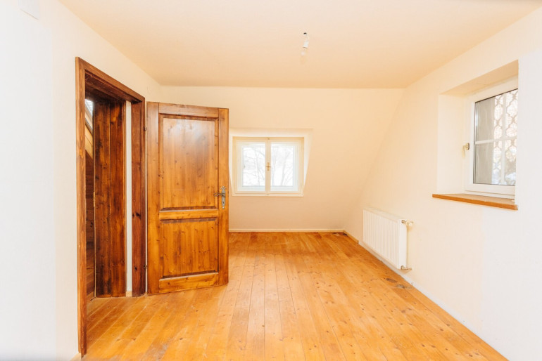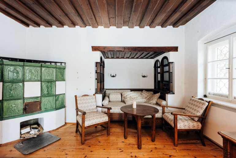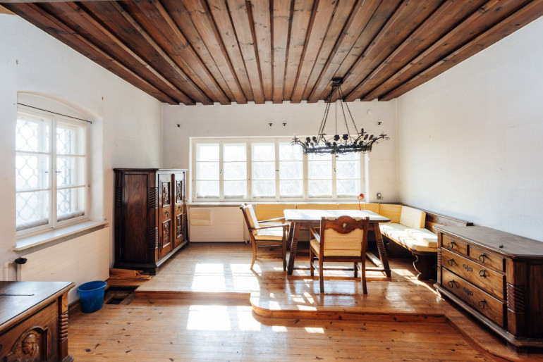 Authentisches Flair aus vergangener Zeit: Dieses Gebäude bietet Platz auf zwei Ebenen und strahlt Gemütlichkeit aus – unter anderem durch den nostalgischen Tischherd, den Kachelofen und viel Holz.