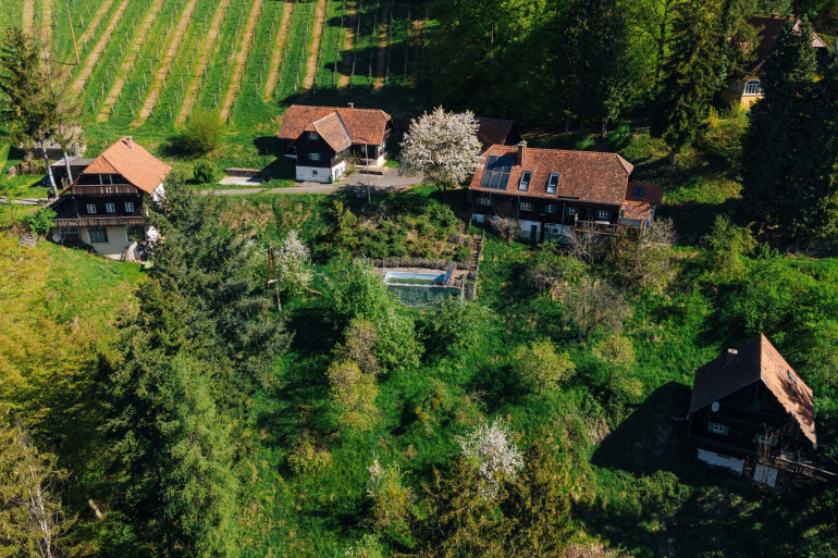 Auf dem weitläufigen Grundstück befinden sich sechs charmante Gebäude und zwei Maschinenunterstände, die allesamt eine behutsame Revitalisierung benötigen. Mit Engagement und Vision lässt sich diese Perle der Südsteiermark wieder zum Strahlen bringen.