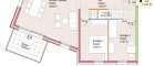 - Ebene 1: Kochen/Wohnen/Essen, Balkon, 2 Bäder, 2 Schlafzimmer, Abstellfläche