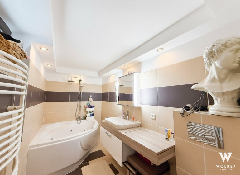- Großzügiges Badezimmer mit Badewanne und integrierter Jacuzzi-Funktion