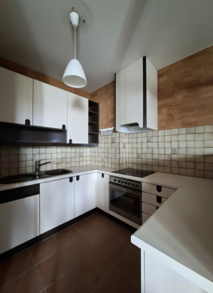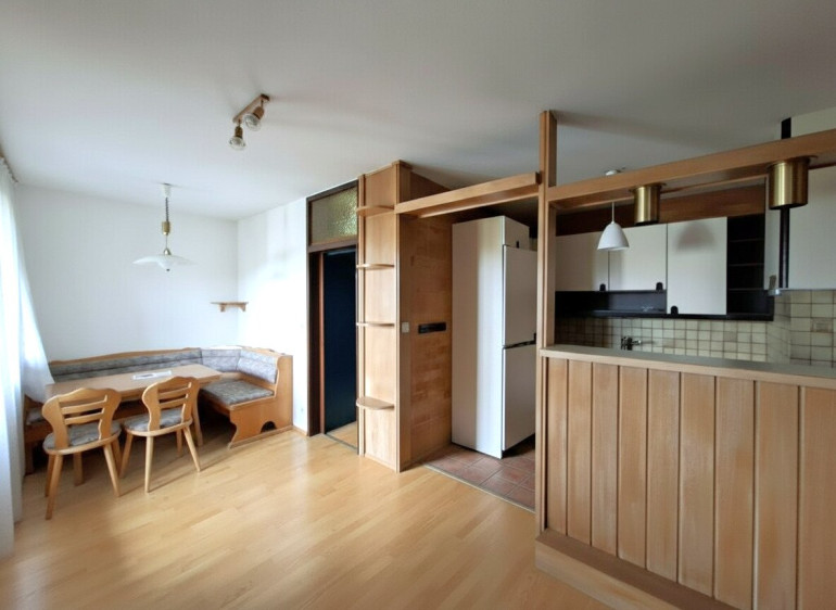 Die Küche ist harmonisch in den Wohnraum eingebunden und wurde kürzlich durch einen neuen Herd mit modernem Ceranfeld aufgewertet. Vom Wohnbereich gelangt man direkt auf die Loggia, die einen idyllischen Blick in den weitläufigen Gemeinschaftsgarten bietet – ein idealer Ort, um den Tag entspannt ausklingen zu lassen.