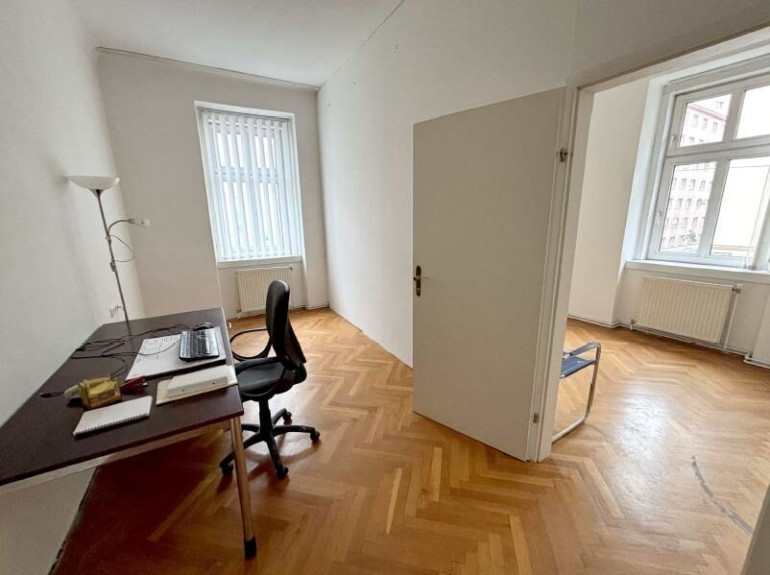 Dieses Büro liegt im ersten Stock eines Altbaus und besteht aus drei Räumen, einem Vorraum und Toilette/Bad.