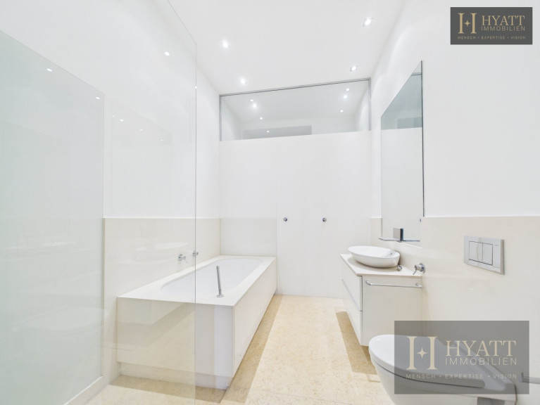 Drei Bäder sowie drei separate WCs bieten höchsten Komfort und ermöglichen eine flexible Nutzung auch bei mehreren Parteien oder Teams. Die südliche Ausrichtung sorgt zusätzlich für eine angenehme Lichtstimmung über den gesamten Tag.