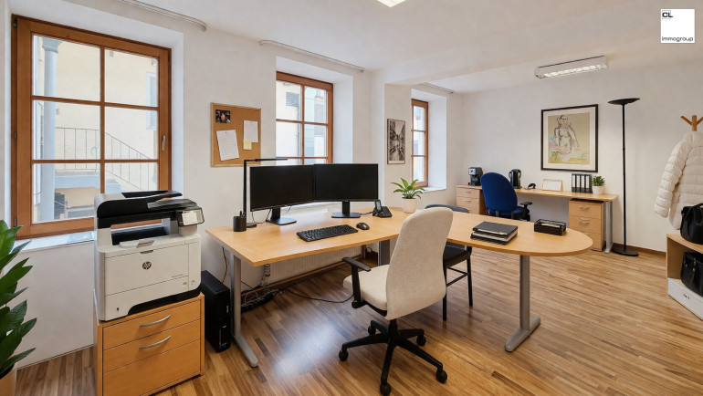 Zum Verkauf steht eine kompakte Büroeinheit im 1. Obergeschoss eines gepflegten Wohn- und Geschäftshauses in bester Zentrumslage von Mondsee (Rainerstraße).