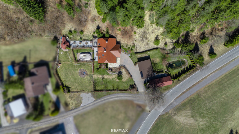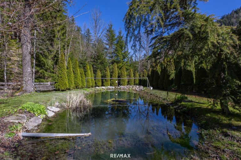 Das rund 4.000 m² große Grundstück umfasst neben einem gepflegten Gartenbereich (ca. 1.000 m²) auch einen eigenen Waldanteil – ideal für Naturliebhaber und Ruhesuchende. Ein kleiner Fischteich, eine Sonnenterrasse sowie ein Balkon schaffen zusätzliche Lebensqualität.
