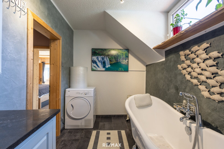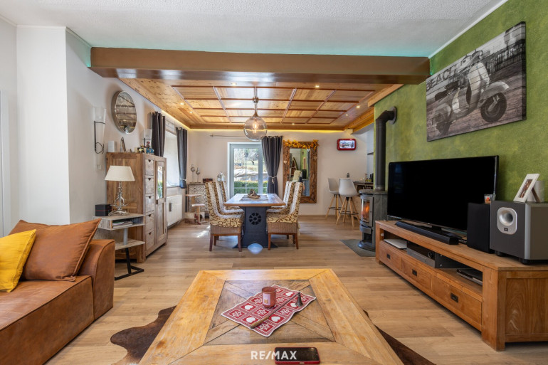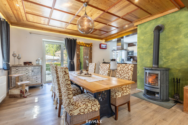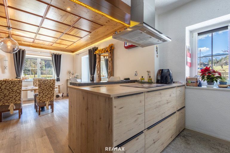 Auf rund 240 m² Wohnfläche (ca. 300 m² Nutzfläche) bietet die Liegenschaft großzügigen Raum für Familie, Arbeiten und Gäste. Besonders attraktiv ist die im Obergeschoss integrierte Ferienwohnung, die durch die Nähe zum Weißensee (nur ca. 5 km entfernt) ein interessantes Zusatzpotenzial bietet (ca. 80–100 Vermietungstage jährlich realistisch).