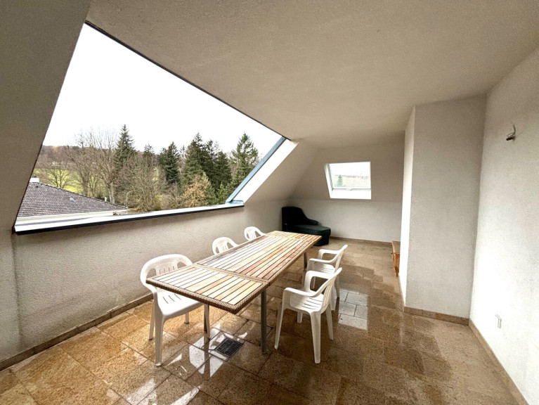 Dachgeschoß cirka 117 m² : 2 großzügige Räume, einer davon mit Küchenzeile, 2 WC. Man könnte auch hier 2 Wohneinheiten gestalten. Im Dachgeschoß liegt auch die große Loggia mit wunderbarem Ausblick.