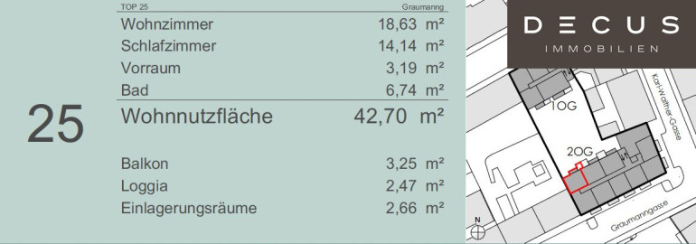 Für weitere Informationen und Besichtigungen steht Ihnen gerne Frau Linda Schmidtberger unter der Mobilnummer +43 660 75 75 013und per E-Mail unter schmidtberger@decus.at persönlich zur Verfügung.