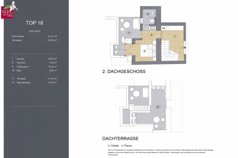 - Dachterrasse: ca. 15,29 m²