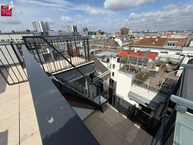 Auf zwei Ebenen plus Dachterrasse bietet diese Immobilie ein durchdachtes Raumkonzept, hochwertige Ausstattung sowie einen beeindruckenden 360° Panoramablick über Wien.