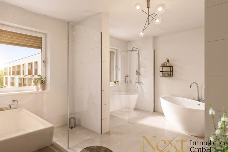 Ihr neues Zuhause bietet zudem zwei großzügige Schlafzimmer, darunter eine komfortable Master-Suite mit Bad en Suite und einem begehbaren Kleiderschrank. Zudem verfügt sie über ein weiteres, stilvolles Badezimmer und eine separate Toilette. Hochwertige Materialien – wie edler Eichenparkettboden in den Wohnräumen und moderne, zeitlose Fliesen in den Nassbereichen – unterstreichen den eleganten Charakter der Wohnung. Die Ausstattung kann jedoch noch nach individuellen Vorstellungen mitgestaltet werden. (Sonderwunsch!)