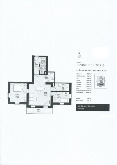 Diese 3-Zimmerwohnung liegt 1. Obergeschoss. Die ca. 83 m2 Wohnfläche sind wohldurchdacht angelegt und haben mit zwei Schlafzimmern, Bad, WC, Vorraum, Garderobe sowie dem ca. 37 m2 großen Wohn/Ess/Kochbereich alles im Programm, was gutes Wohnen ausmacht. Große Fenster sorgen für eine natürliche und angenehme Wohnatmosphäre. Und wer eine Auszeit unter freiem Himmel genießen möchte, kann sich auf dem nach Süden ausgerichteten Balkon entspannt zurücklehnen. Zum Wohnpaket gehören auch Kellerabteil und Freistellplatz. Die Kosten pro Stellplatz betragen € 20.000,-. Dieses innovative Wohnkonzept überzeugt auf ganzer Linie mit perfekter Raumaufteilung und hohem Wohnkomfort.