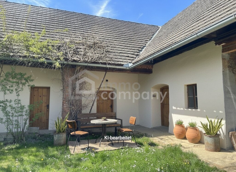 Der jetzige Wohnteil, bestehend aus 2 Zimmern, Küche, Bad und WC, mit ca. 50 m2 wurde hergerichtet. Das Dach hier wurde vor ca. 15 Jahren inkl. Dachstuhl erneuert. Ortswasserleitung und Kanal sind angeschlossen... und ... es gibt "schnelles" Internet. Geheizt wird elektrisch und mit dem Schwedenofen. Beim Rest des Hauses kann die Kernsanierung weitergeführt werden. Es gibt den alten Gewölbekeller, früher das Lager des Gasthauses. Dieser würde sich als Weinkeller eignen. Die Nebengebäude sind ebenfalls erhaltenswert.