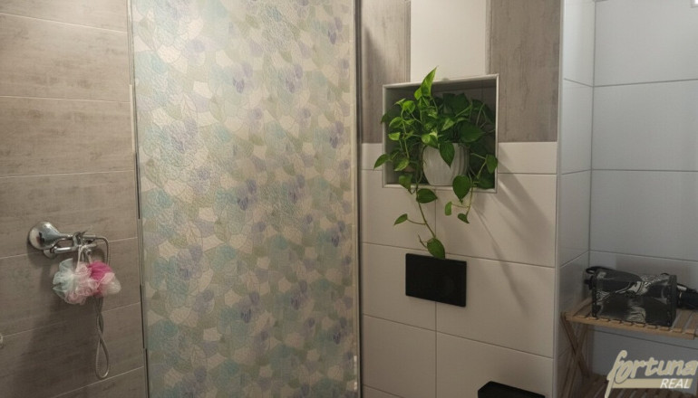 Fliesen, Laminatboden, Öl, Kamin, Einbauküche, Ostbalkon, Bad mit Fenster, Dusche, Parkplatz