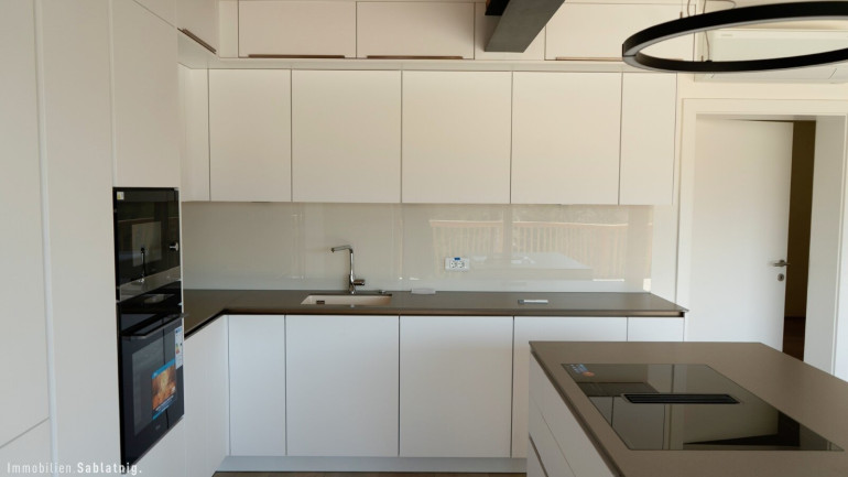 Der überdachte Zugang führt in ein großzügiges Entrée mit Gäste-WC. Bereits beim Betreten beeindruckt der offene Blick durch das Haus bis in die Ferne. Von hier aus gelangen Sie in das Herzstück des Hauses – den weitläufigen Wohn- und Essbereich. Großzügigkeit, modernes Design und ein einzigartiger Ausblick verschmelzen hier zu einem besonderen Wohngefühl. Große Fensterflächen sorgen für lichtdurchflutete Räume, während ein stilvoller Kamin für Wärme und Atmosphäre steht. Die hochwertige Designerküche ist offen in den Wohnbereich integriert und bietet einen fließenden Übergang zur großzügigen Terrasse, von der aus Sie direkt in den Garten gelangen.