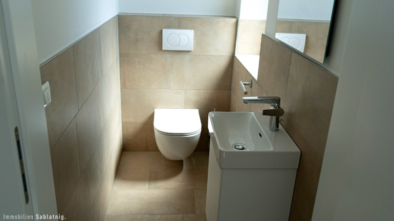 Über das Entrée erreichen Sie die untere Ebene des Hauses. Diese bietet zusätzlichen Komfort mit einem weiteren Badezimmer, separatem WC sowie einem großzügigen Raum – ideal für Fitness, Wellness oder Hobby. Ergänzt wird diese Ebene durch einen Technikraum und einen sehr großen Abstellraum.