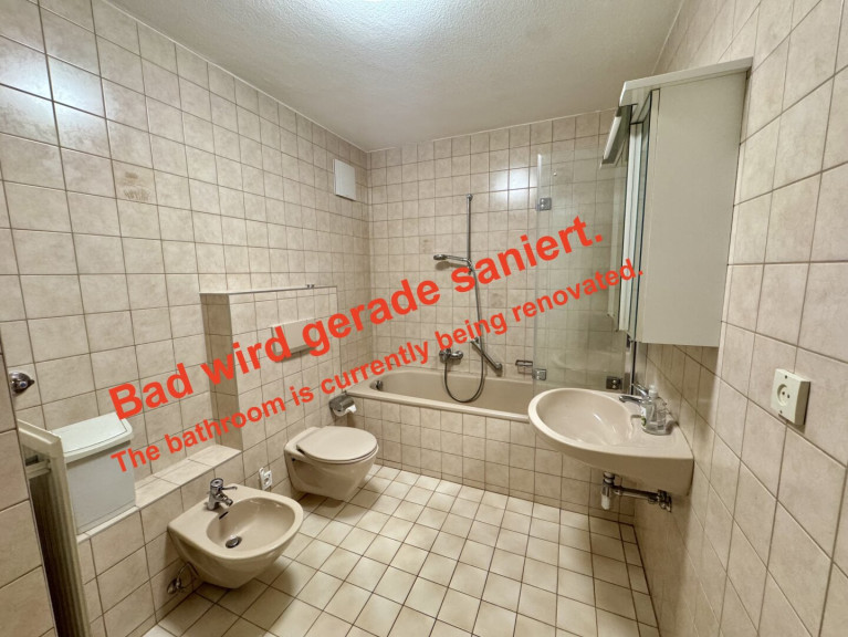The kitchen is newly installed and fully equipped. The bathrooms are currently being completely renovated. The photos shown are from before the renovation.