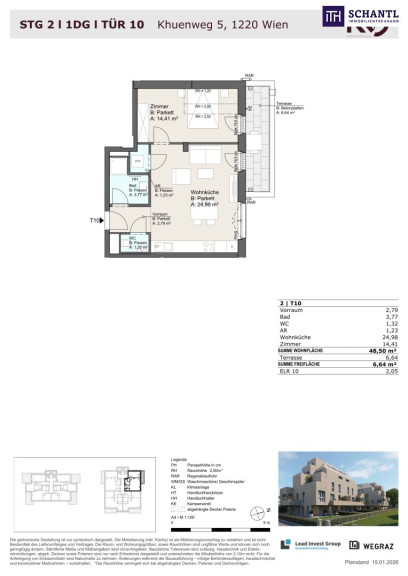 Wohnfläche: ca. 48,50m² + Terrasse: 6,64m² + Kellerabteil: ca. 2,05m²