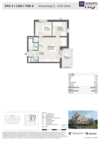 Wohnfläche: ca. 55,35m² + Terrasse: 8,45m² + Kellerabteil: ca. 2,14m²