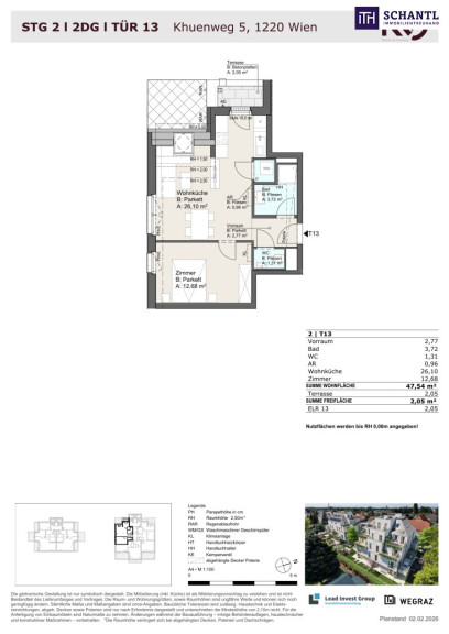 Wohnfläche: ca. 47,54m² + Terrasse: 2,05m² + Kellerabteil: ca. 2,05m²