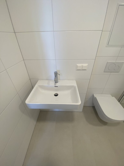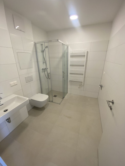 - Bad mit bodenebener Dusche, WC und Waschmaschinenanschluss, Handtuchheizkörper,