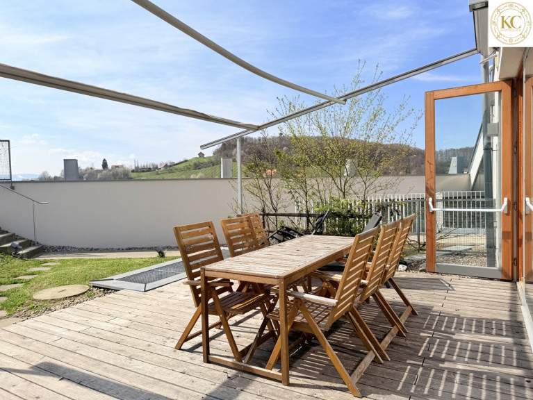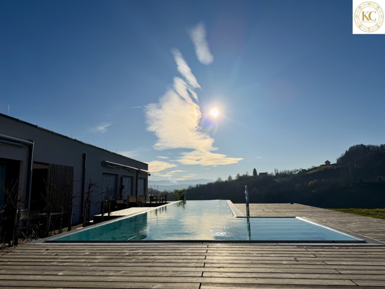 „An-der-Lage“ - Ankommen, durchatmen und genießen: Dieses außergewöhnliche Apartment begeistert mit einer atemberaubenden Aussicht, viel Sonne und wohltuender Ruhe. Die geschützte Terrasse lädt zu jeder Jahreszeit zum Verweilen ein – selbst im Winter können Sie hier die Sonne genießen, entspannen und bei einem Glas steirischen Weins die Seele baumeln lassen. In den warmen Monaten sorgt der Pool für Erfrischung, während Fitness- und Wellnesseinrichtungen direkt im Haus zusätzlichen Komfort bieten.