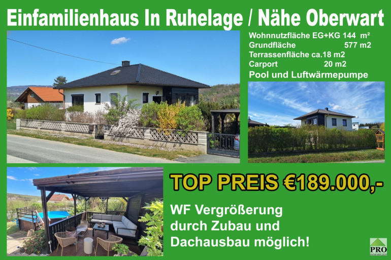 Einfamilienhaus In Ruhelage mit Ausbaupotential Terrasse und Pool/ Nähe Oberwart