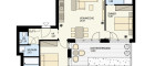 Die Wohnung verfügt über eine großzügige, nach Süden ausgerichtete Wohnküche mit schönem Blick und Ausgang auf die eigene SW-Terrasse und die kleine Gartenfläche. Die bodentiefen Fensterflächen in den Räumen schaffen ein sehr helles und großzügiges Raum- und angenehmes Wohngefühl. Die beiden Schlafzimmer/ Arbeitszimmer sind ebenfalls nach Süden bzw. Westen jeweils mit Ausgang auf die Freiflächen ausgerichtet. Zwei Dusch-Bäder, ein separates WC, ein Abtellraum mit WM-Anschluß und ein Vorraum runden das Raumangebot ab.