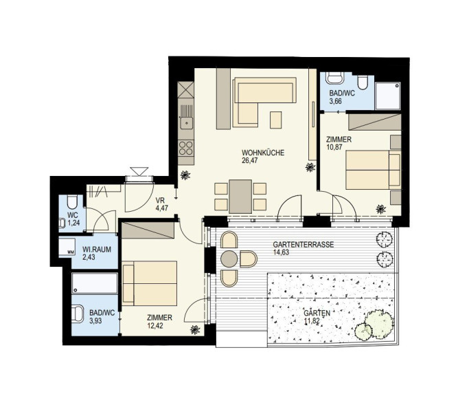 Die gegenständliche 3 Zimmer Garten-Terrassenwohnung befindet sich im Erdgeschoss.