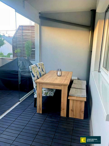 Die gepflegte Wohnung besticht durch eine durchdachte Raumaufteilung und hochwertige Ausstattung. Der helle Wohnbereich mit eleganten Fliesen- und Steinböden sowie angenehmer Fußbodenheizung sorgt für ein behagliches Wohngefühl. Die moderne Einbauküche ist bereits integriert und lädt zu genussvollen Kochabenden ein. Ein besonderes Highlight ist der Südostbalkon, der an sonnigen Tagen zum Entspannen und Verweilen einlädt – ideal für gemütliche Stunden im Freien.