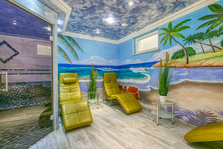 - Stilvolle Details wie Wandmalereien und Designerbeleuchtung