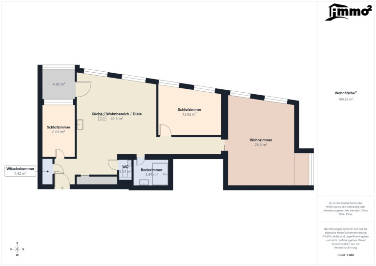 Die Wohnung überzeugt mit einer durchdachten und vielseitigen Raumaufteilung auf ca. 102 m² Wohnfläche, die sowohl Komfort als auch Flexibilität im Alltag bietet. Der einladende Vorraum führt in den zentralen Wohnbereich, bestehend aus einer offen gestalteten Wohnküche mit großzügigem Essbereich, die das Herzstück der Wohnung bildet. Hier entstehen helle, kommunikative Wohnräume mit viel Platz für gemeinsame Stunden.